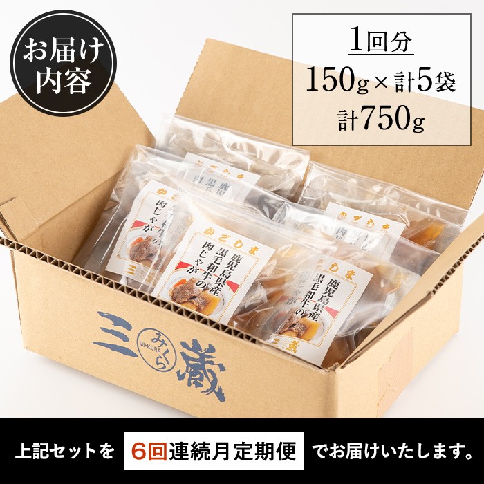 <定期便>自宅で簡単調理!お手軽にプロの肉じゃがが楽しめる!常温保存可 i933 <定期便・計6回(連続)>鹿児島県産黒毛和牛の肉じゃが<(150g×5袋・計750g)×全6回>常温 常温保存 肉じゃが 鹿児島県産 牛肉 黒毛和牛 じゃがいも 加工品 おかず 晩御飯 簡単調理 お手軽 プロの味 定期便【西尾】