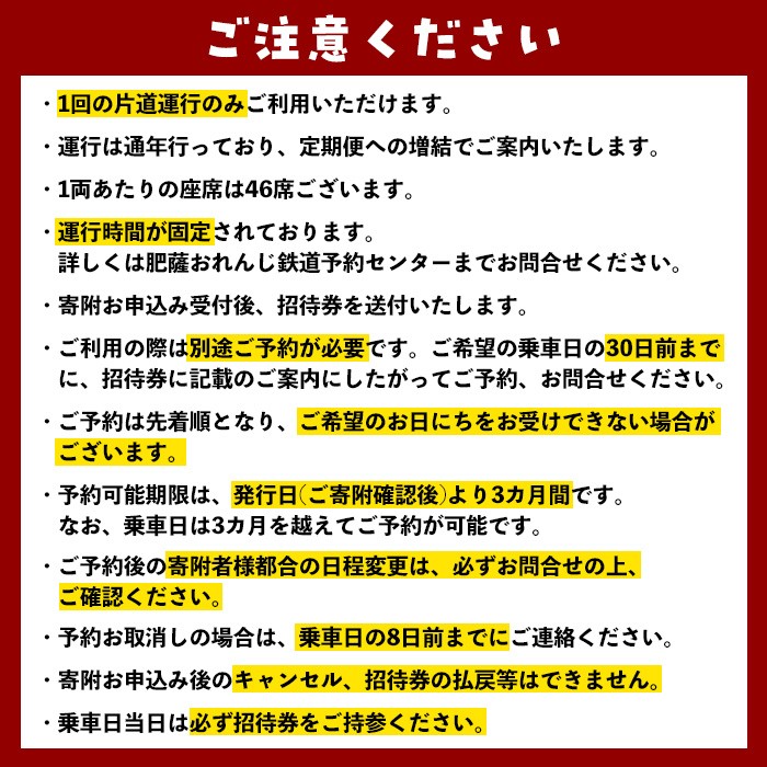 ・運行時間が固定されております。詳しくは肥薩おれんじ鉄道予約センターまでお問合せください。
