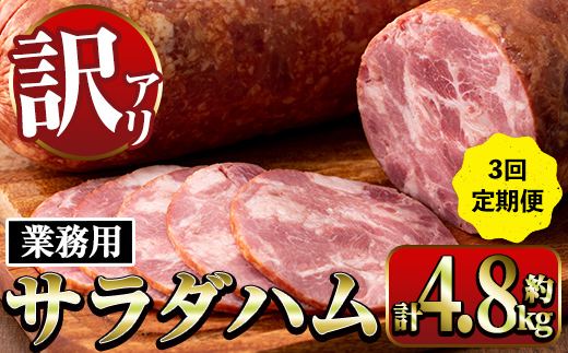 地域の生産者応援の品 \テレビ番組で紹介されました/ 国産豚肉を熟成させたプレスハムです! i1204 <定期便・計3回(連続月or隔月選べる!)>《業務用・訳あり》サラダハム (計4.8kg /定期便 全3回) ハム 国産 豚肉 塩漬 熟成 プレスハム 肉加工品 訳アリ 業務用 サラダ トッピング 定期便 配送間隔が選べる 【ナンチク】