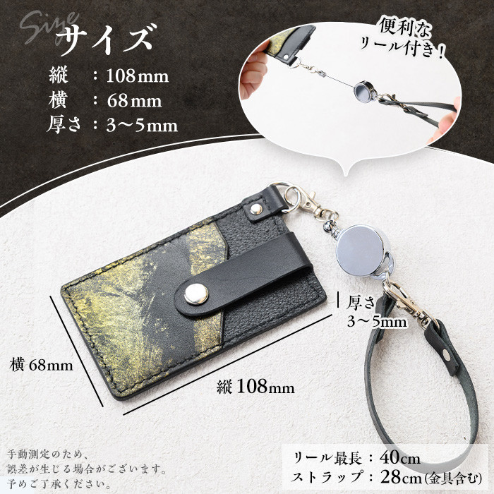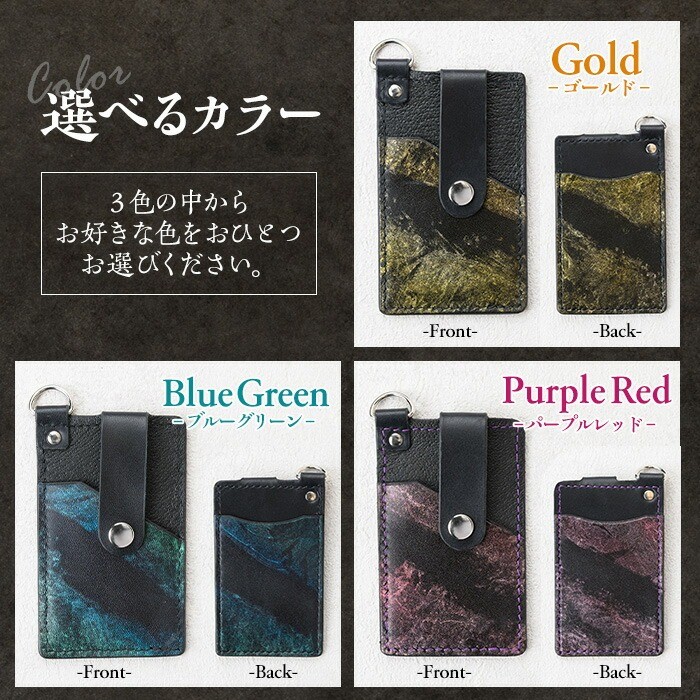ここに新しき雅がある i1110-f 【父の日ギフト】<色が選べる>本革 パスケース ~雅~ カード ケース 定期 入れ 牛 革 レザー リール 付き ストラップ ハンドメイド ゴールド ブルー グリーン パープル レッド 金 青 緑 紫 赤 プレゼント ギフト 父の日 贈答 【アート・ヒデ】