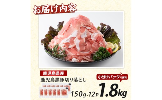 鹿児島が誇る「黒豚」1.8kg!小分けエコ包装 【1.8kg】鹿児島県産黒豚切落し小分けパック150g×12P トレー無しエコパック(水迫畜産/013-1006) 肉 豚 いぶすき 鹿児島