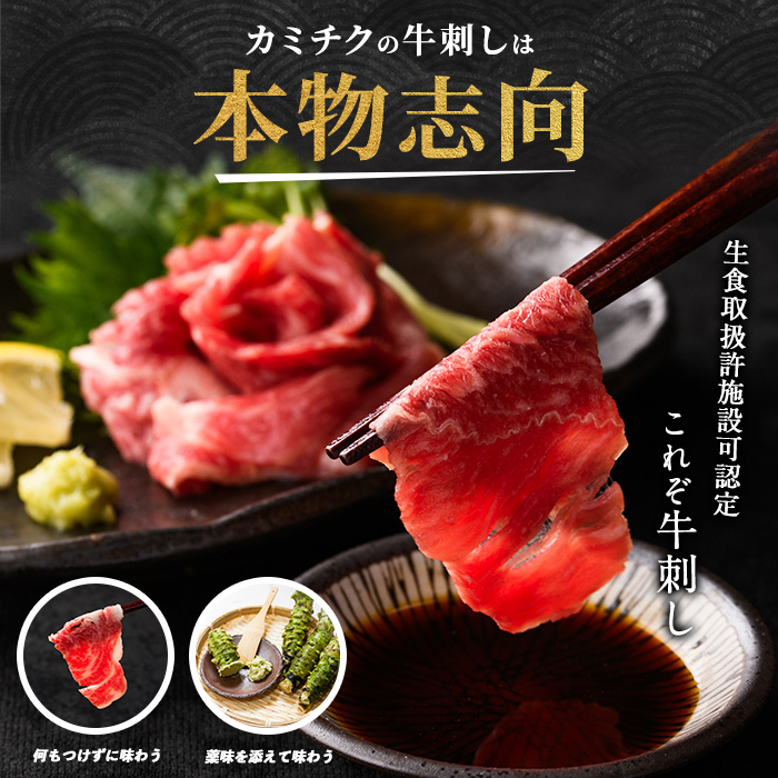 とろける甘みの黒毛和牛牛刺し食べきりサイズ!! A5等級鹿児島県産黒毛和牛牛刺し4人前(カミチク/A-438)ふるさと納税 指宿市 特産品 国産 個包装 牛肉 肉 焼肉 牛握り 炙り 寿司 ユッケ
