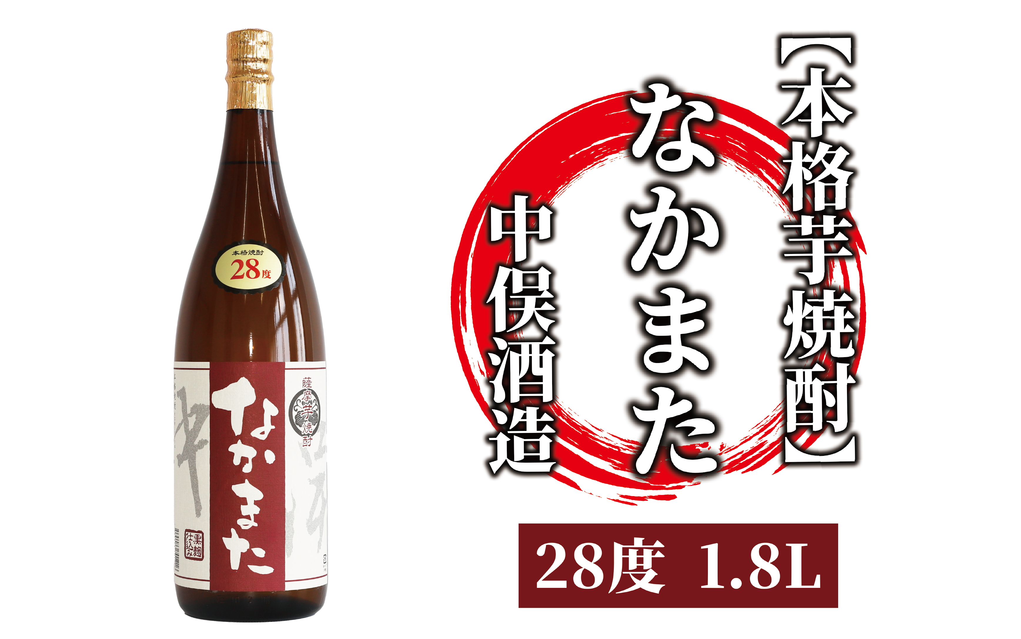 喉越しがまろやかで甘い香り。じっくり時間をかけた常圧蒸留の甘口芋焼酎 【本格芋焼酎】なかまた 28度 1.8L(中俣酒造/014-1525) 焼酎 芋 本格焼酎 本格芋焼酎 芋焼酎 さつまいも 一升瓶 一升びん 蔵元 特選 焼酎 鹿児島 焼酎 お試し 焼酎 いも 本格焼酎