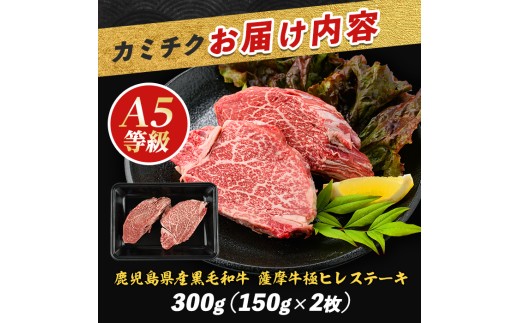 最高級厚切りヒレステーキ! 薩摩牛 極 ヒレステーキ 300g(2枚入)(カミチク/026-1657) A5 国産 牛肉 牛 ブランド牛 ヘレ ヘレ肉 黒毛和牛 鹿児島県産 黒毛 A5ランク 国産牛 お肉 肉 ヒレ ヒレ肉 鉄板焼き 鹿児島 指宿 鹿児島県産 ギフト おかず ご褒美 ステーキ 和牛 冷凍 厚切り 厚切りステーキ きわみ 極み 薩摩 薩摩牛 さつま