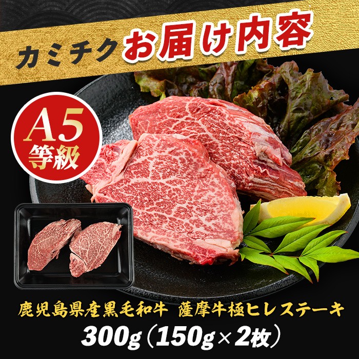 最高級厚切りヒレステーキ! 薩摩牛 極 ヒレステーキ 300g(2枚入)(カミチク/026-1657) A5 国産 牛肉 牛 ブランド牛 ヘレ ヘレ肉 黒毛和牛 鹿児島県産 黒毛 A5ランク 国産牛 お肉 肉 ヒレ ヒレ肉 鉄板焼き 鹿児島 指宿 鹿児島県産 ギフト おかず ご褒美 ステーキ 和牛 冷凍 厚切り 厚切りステーキ きわみ 極み 薩摩 薩摩牛 さつま