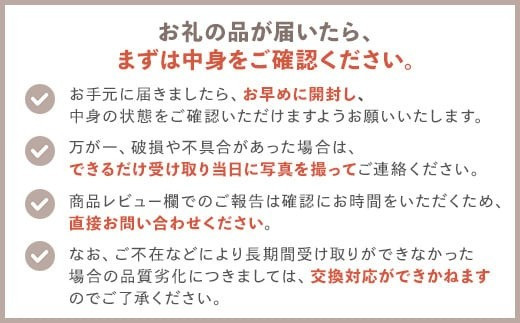 ご決済確認後、10営業日以内に発送いたします。 ※休業日は除きます。 ※配達日指定は承れませんので、ご了承ください。 ※お申し込み後の配送先変更や寄附キャンセルは承れませんので、お申し込み前にもう一度お届け先等をご確認ください。 ■ご不在日や配達時間帯指定は、必ずお申込み時に下記までご連絡ください。 指宿市ふるさと納税担当(平日8:30~17:15) 電話:0993-23-1072 E-mail:ibuf@po.minc.ne.jp |