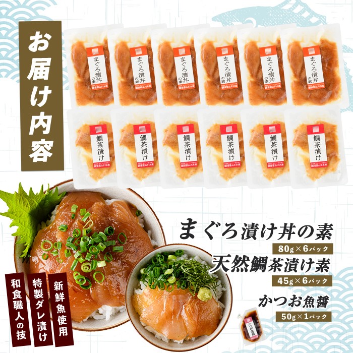 お魚好きのためのコラボ!マグロと鯛のお手軽パック 【指宿直送便】マグロ漬け丼と天然鯛茶漬けセット各6P (指宿山川水産/IB035-003) 鮪 キハダマグロ 天然鯛 漬け 漬け丼 茶漬け 海鮮 魚介類 小分け 国産 冷凍