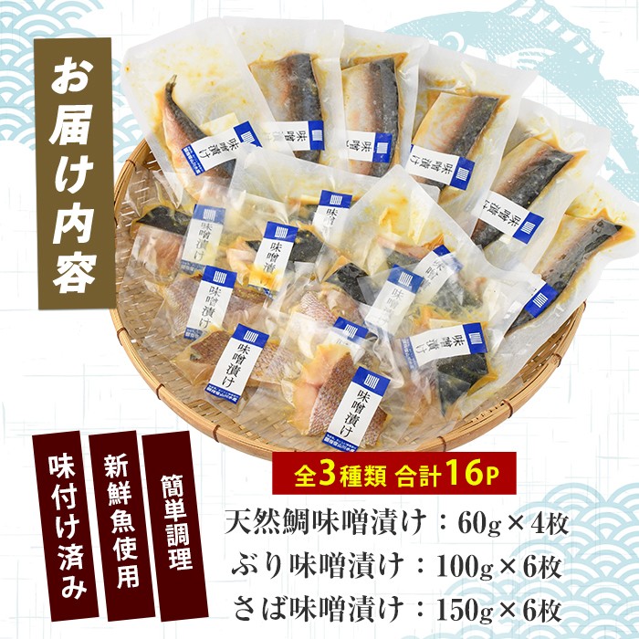 漁師が厳選した魚を特製の味噌で漬け込みました。 漁師がつくる味噌漬け16Pセット (指宿山川水産/IB035-019) 魚 味噌漬け 焼き魚 焼くだけ 鯛 ブリ ぶり 鰤 サバ さば 鯖 総菜 詰め合わせ セット