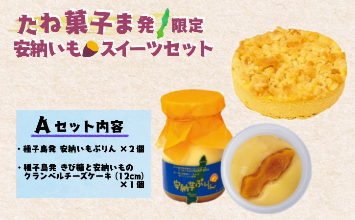 たね菓子ま発 限定 種子島 安納芋 スイーツセット A NFN011【300pt】 // ぷりん クランブルチーズケーキ きび糖 サトウキビ サトウキビ チーズケーキ