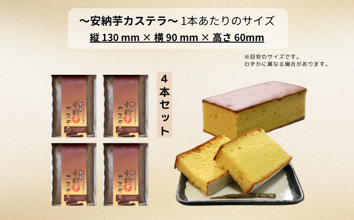 | 容量 | 種子島産 安納いも カステラ 約130×90×60mm × 4本 |