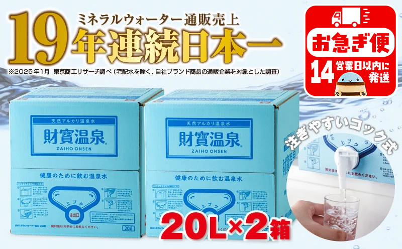 A1-22532/日本一売れている 天然アルカリ温泉水 財寶温泉 20L×2箱