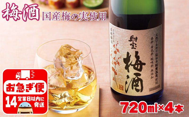 【女性に大人気の梅酒】国産梅と天然アルカリ温泉水 財寶温泉 使用! A1-22454/濃厚な味わい!梅酒4本