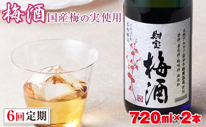 【女性に大人気の梅酒】国産梅と天然アルカリ温泉水財寶温泉 使用! D4-2252/【6回定期】濃厚な味わい!梅酒2本