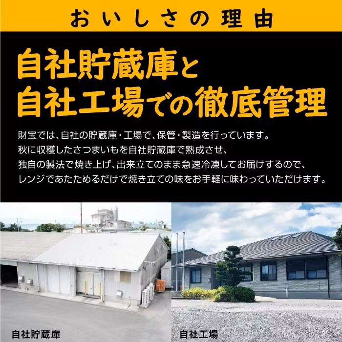 ★焼き芋ファンの皆さま、お待たせしました!★ 素材の美味しさをそのままに丹精込めて焼き上げた、鹿児島産「紅はるか」の冷凍焼き芋です。 紅はるかの由来は、既存の品種よりも「甘み・食感・外観」などが“はるかに優れている”ことから名づけられました。 甘さをしっかり引き出すために、温度・湿度が管理された専用貯蔵庫で熟成させてから焼き上げました。口いっぱいに紅はるか特有の甘さが広がり、まるでスイーツを食べているかのような美味しさです。 焼きたてをすぐに急速冷凍していますので、電子レンジで温めるだけで、焼きたての味をお手軽にご賞味いただけます。 ホクホクした焼き芋にホイップクリームをトッピングしたり、お好みの食感に半解凍させてシャーベットのようにして食べたり、お好みのお召し上がり方でお楽しみください。 食物繊維が摂れる自然派スイーツをご家族皆さまでご堪能ください。 ━━━━━━━━━━━━━━━━━━━━━━━ ◆◆◆ 重要なお知らせ ◆◆◆ 入金確認後、2週間以内に発送 ※沖縄県・離島への配送はいたしかねます。ご了承ください。 ※年末年始、天候、在庫状況により多少遅れる場合がございます。 ━━━━━━━━━━━━━━━━━━━━━━━ 【提供】株式会社 財宝