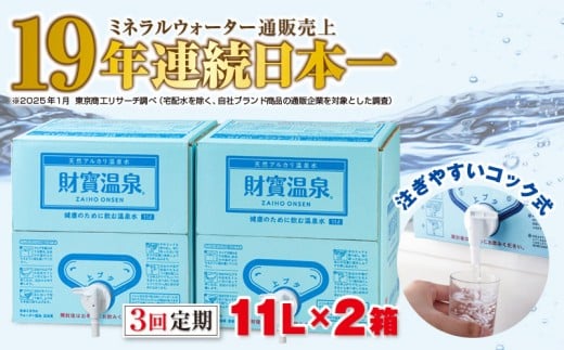 C3-22131/【3回定期】天然アルカリ温泉水 財寶温泉 11L×2箱