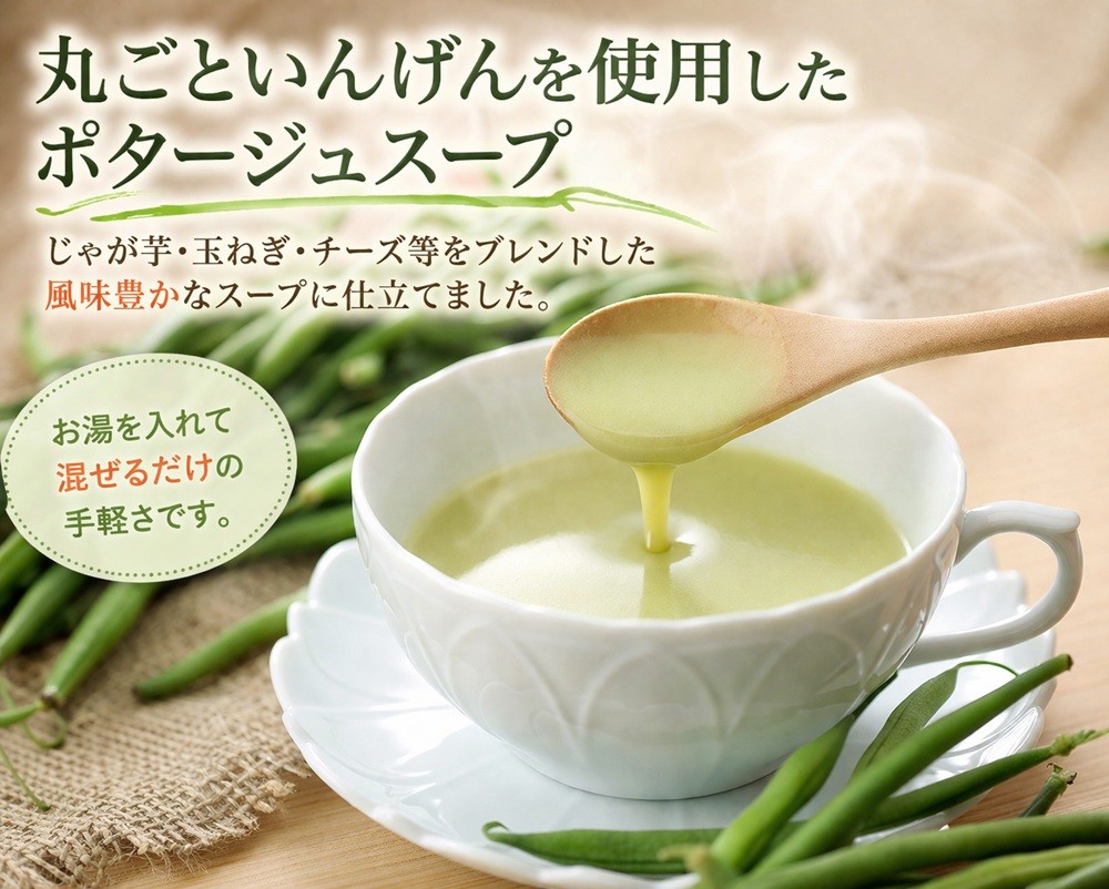 丸ごといんげんを使用したポタージュスープは、