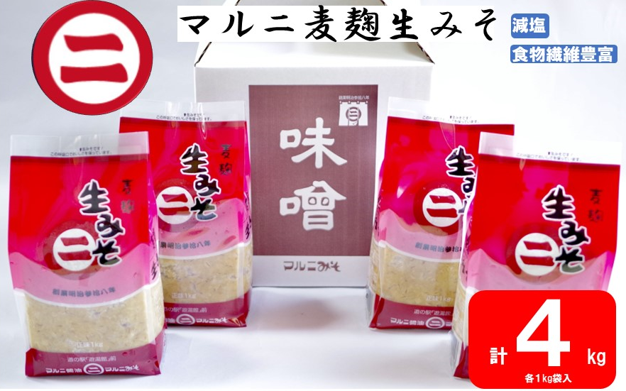 | 容量 | マルニ麦麹生みそ 袋入り1kg×4個 【取扱事業者】薩摩川内味噌醤油株式会社 |