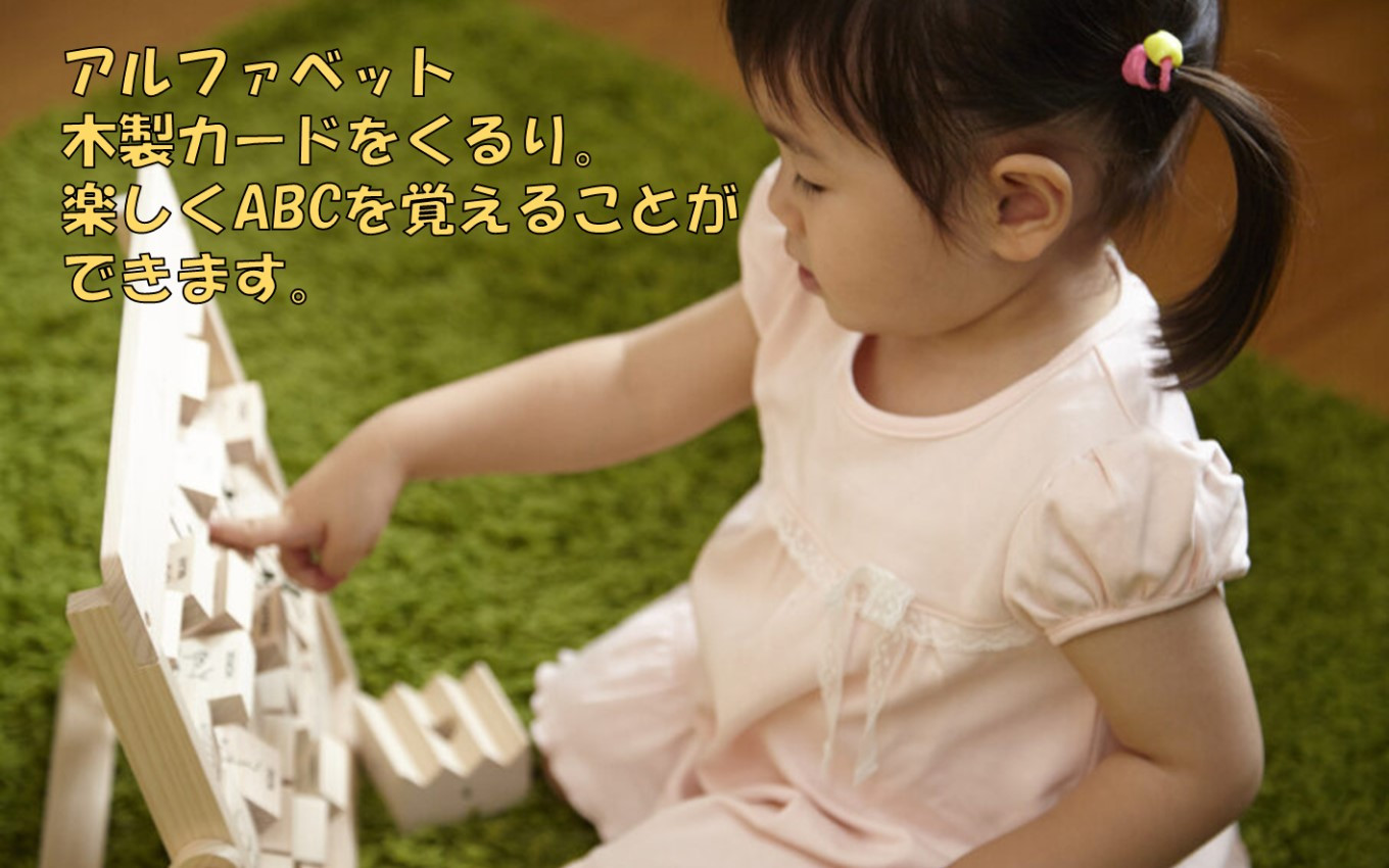 木製カードをクルリと回すことで、脳の発達を促すと言われる指先の巧緻性も養うことができ、英単語の勉強も出来ます。イラストを見ながら、楽しくABCを覚えることが出来ます。折り畳んでスッキリ収納可能!