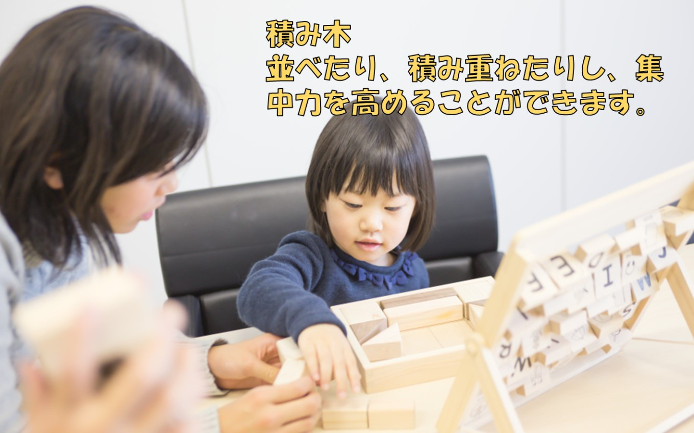 並べたり、つみ重ねたり、くずしたりと・・・あそびを繰り返す中で空間認知能力を養い、集中力やバランス感覚を身につけていきます。箱には図面が書いてあるので、遊んだあとのお片付けがパズル感覚で身に付きます。