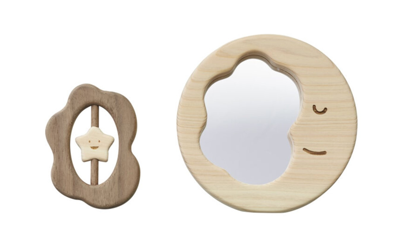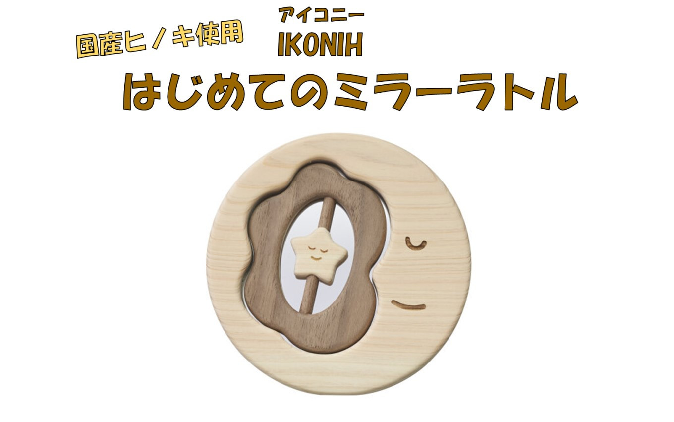 月と星がモチーフのおもちゃ。はじめてのおもちゃにも最適です。 CS-311 薩摩川内市産ヒノキ IKONIH はじめてミラーラトル