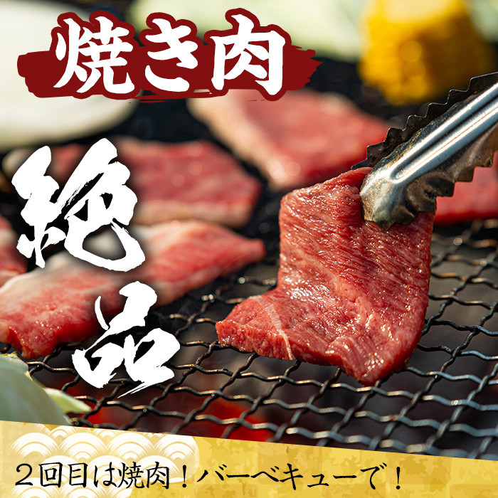 | 容量 | 1回目 鹿児島県産黒毛和牛すきしゃぶ用赤身肉:400g×2P ※モモもしくはカタスライス 2回目 鹿児島県産黒毛和牛赤身焼肉用:400g×2P ※モモもしくはカタ焼肉用 3回目 モモ赤身ステーキ:10~12枚(計800g) |