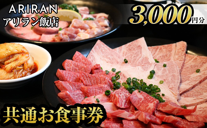 鹿児島の食材にこだわる人気焼肉店のお食事券! No.924 アリラン飯店5店舗共通お食事券(3,000円分)焼肉 焼き肉 黒毛和牛 黒豚 チケット 体験 お食事券 焼肉店 専門店【アリラン飯店】