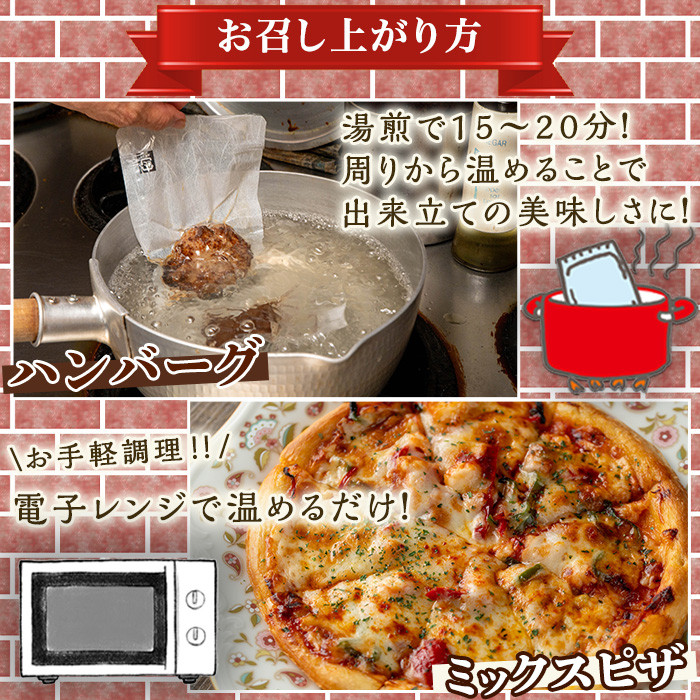 日置市 特産品 お肉 ハンバーグ デミグラス デミグラスハンバーグ ピザ おかず 小分け 冷凍 冷凍ハンバーグ 冷凍ピザ 簡単調理