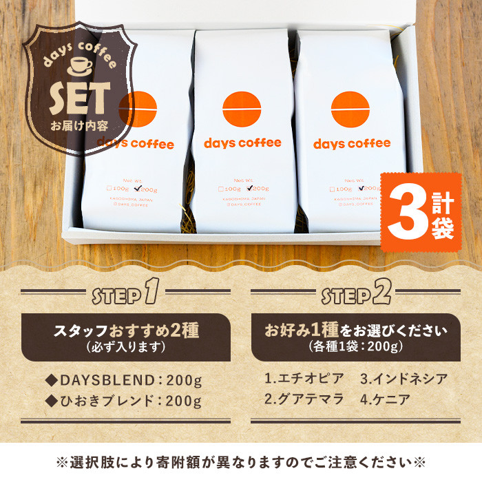 生豆を水洗いし、自家焙煎!クリーンで甘さのある味わい! No.1190 <選べる4種!>自家焙煎コーヒー豆「スペシャリティコーヒー」(200g×3袋・合計600g)【days coffee】