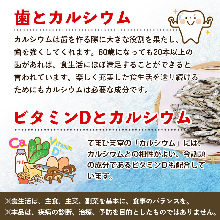 骨や歯の健康が気になる方に!カルシウムと相性のよいビタミンDも配合! No.897/1288/1289 <選べる>カルシウム(1袋 186粒入り/1袋・3袋・2袋×3回・2袋×6回) 鹿児島 日置市 健康食品 サプリ サプリメント 栄養バランス 食生活 安心安全 カルシウム 乳製品 歯 骨 にぼし 煮干し ビタミンD 定期便 頒布会【てまひま堂】