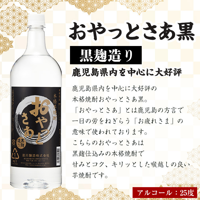 岩川醸造 おやっとさあ(黒) 900mlセット (計6本) 焼酎 ハーフサ…20,000 円 ハーフサイズの900mlなので量を飲まれない方にも最適です! - 常温便