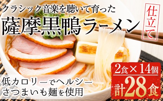 国産!鹿児島県曽於市産の薩摩黒鴨ラーメン(2食入×14個・計28食…