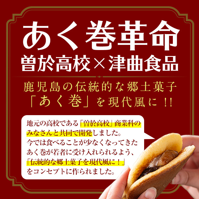曽於市の地元の高校「曽於高校商業科」の生徒が商品開発をした「あくドラ」。 鹿児島の銘菓のあく巻をドラ焼にサンドした商品です。 株式会社 津曲食品 国産 お菓子 スイーツ 土産 和菓子 あくまき あく巻き どらやき どら焼き 餡 あんこ ホイップ 個包装 ギフト 贈答 おかしバレンタイン ホワイトデー