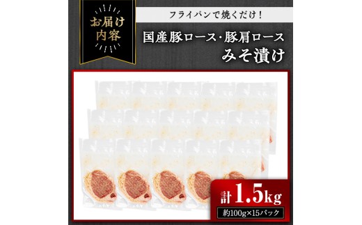 国産豚ロース・豚肩ロースみそ漬け(計1.5kg・約100g×15パック)…