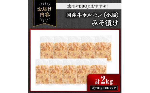 国産牛ホルモンをみそダレで味付け! 国産牛ホルモン(小腸)みそ漬け(計2kg・約200g×10パック)牛肉ホルモンみそ漬け【おきどき】A818-v01