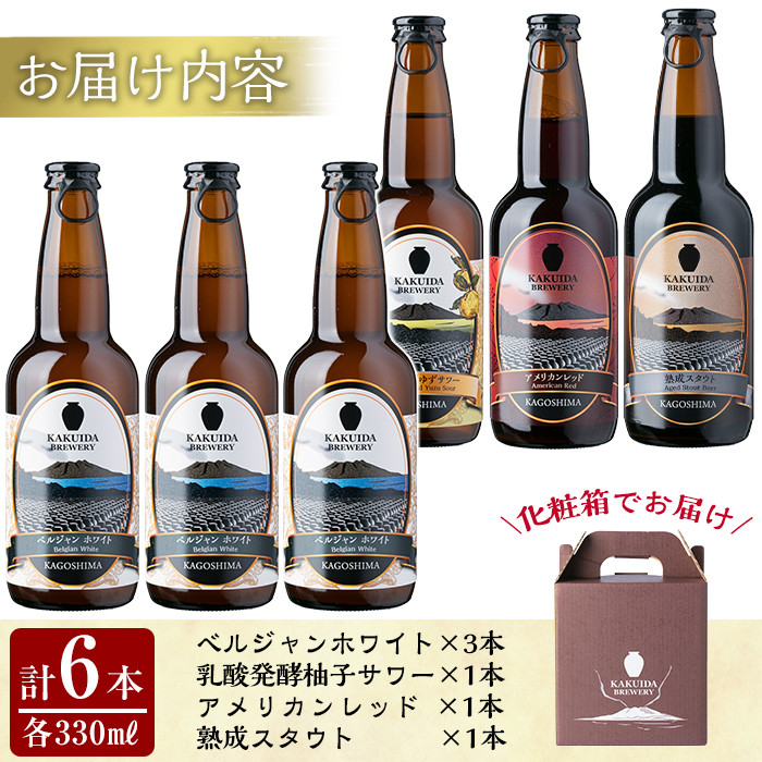 ギフトにもおすすめ♪4種類のクラフトビールを飲み比べセットでお楽しみください。 A4-005 KAKUIDA BREWERY 飲み比べセットB(計6本)【福山黒酢】霧島市 ビール クラフトビール ご当地ビール 地ビール お酒 かくいだ 桷志田 ベルジャンホワイト アメリカンレッド 乳酸発酵柚子サワー 熟成スタウト