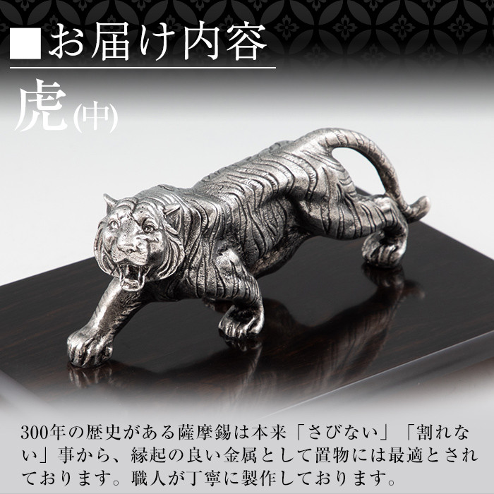 《皇室献上実績》伝統工芸品『薩摩錫器』の置物♪迫力ある寅のモチーフ! P5-002 薩摩錫器 置物虎(中)【薩摩錫器工芸館】霧島市 鹿児島 伝統工芸品 錫製品 錫製 トラ 小物 置物 インテリア 日用品 ギフト 贈答 贈り物 プレゼント 縁起物 台座付き