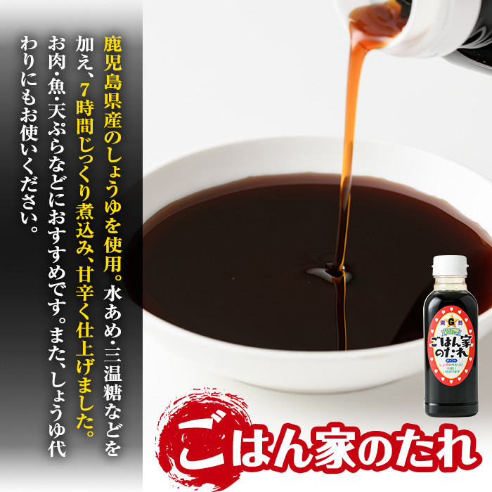 ごはん家のたれ:三温糖、水あめ、鹿児島県産のしょうゆなど、長時間かけて作りました。おしょうゆ代わりになる甘辛万能たれです。