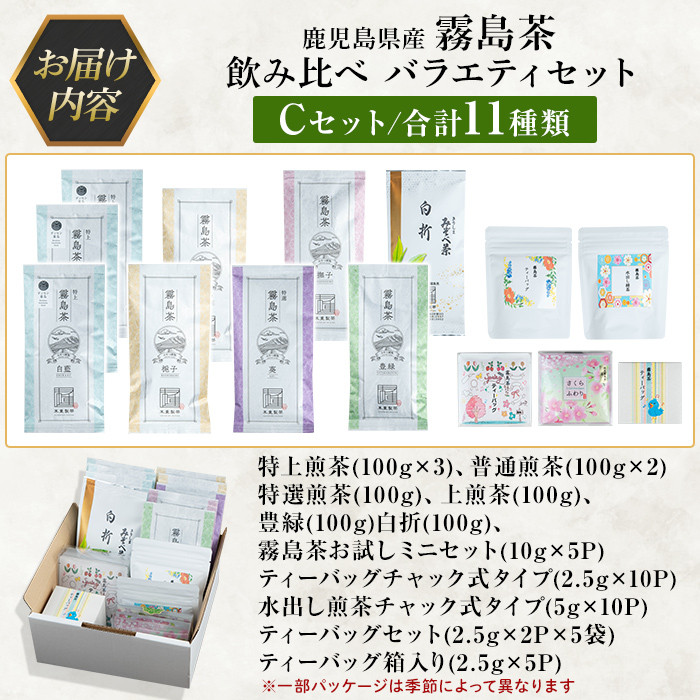 農林水産大臣賞をはじめ数々の賞を受賞!使いやすティーバッグで緑茶を手軽に♪ <選べる容量!3セット>鹿児島県産霧島茶飲み比べバラエティセット(8種・10種・11種)【末重製茶】霧島市 国産 日本茶 お茶 霧島茶 ティーバッグ お手軽 緑茶 茶葉 水出し茶 煎茶 銘茶 詰め合わせ 詰合せ A-156 B-111 C-064