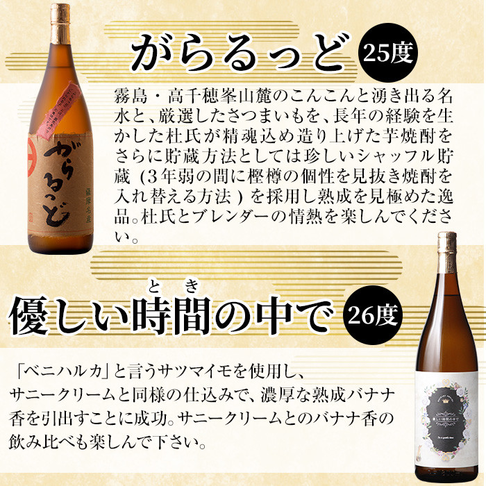 鹿児島本格芋焼酎!いも焼酎2種飲み比べセット! K-230 本格芋焼酎飲み比べセット!「優しい時間の中で」「がらるっど」(各1800ml) 【石野商店】 霧島市 焼酎 芋焼酎 本格芋焼酎 本格焼酎 酒 一升瓶 宅飲み 家飲み 詰め合わせ 詰合せ