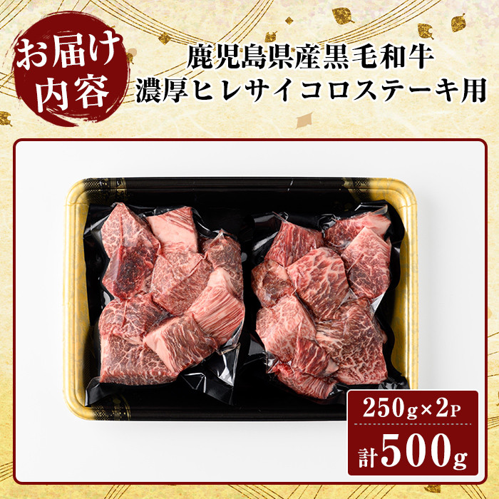 貴重なヒレ肉をサイコロカットにしてお届けします。 K-327 鹿児島県産黒毛和牛 濃厚ヒレ サイコロステーキ用(計500g・250g×2P)【ビーフ倉薗】霧島市 牛肉 ステーキ フィレ 赤身 国産 鹿児島県産 黒毛和牛 肉 精肉 牛