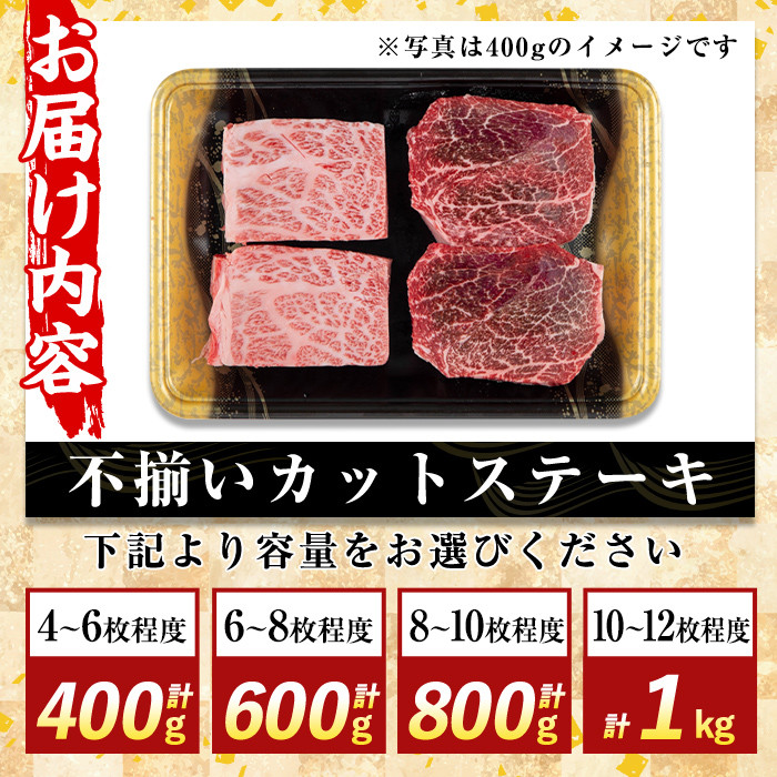 地域の生産者応援の品 鹿児島県産黒毛和牛の中でも最上ランクのA5等級のお肉をお届け! K-473 <選べる容量・訳あり>鹿児島県産A5等級黒毛和牛不揃いカットステーキ(計400g~1kg)【ふるさと産直バザール】霧島市 不揃い 部位ミックス ランダム 牛肉 国産 鹿児島県産 肉 精肉 ワケアリ