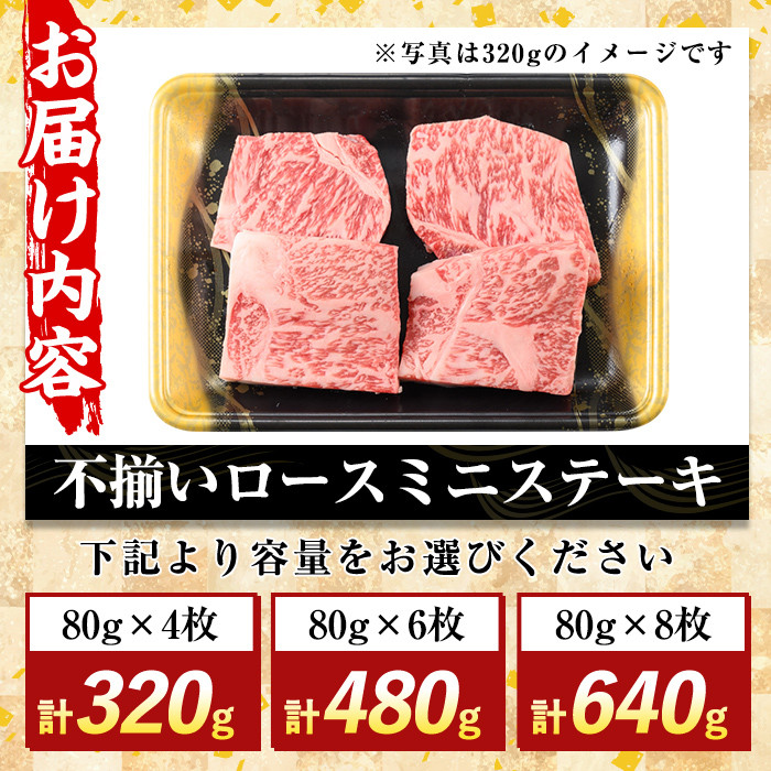 地域の生産者応援の品 鹿児島県産黒毛和牛の中でも最上ランクのA5等級のお肉をお届け! K-479 <選べる容量・訳あり>鹿児島県産A5等級黒毛和牛不揃いロースミニステーキ(計320g~640g) 【ふるさと産直バザール】霧島市 牛肉 国産 鹿児島県産 赤身肉 不揃い ワケアリ ロース ステーキ 肉 精肉