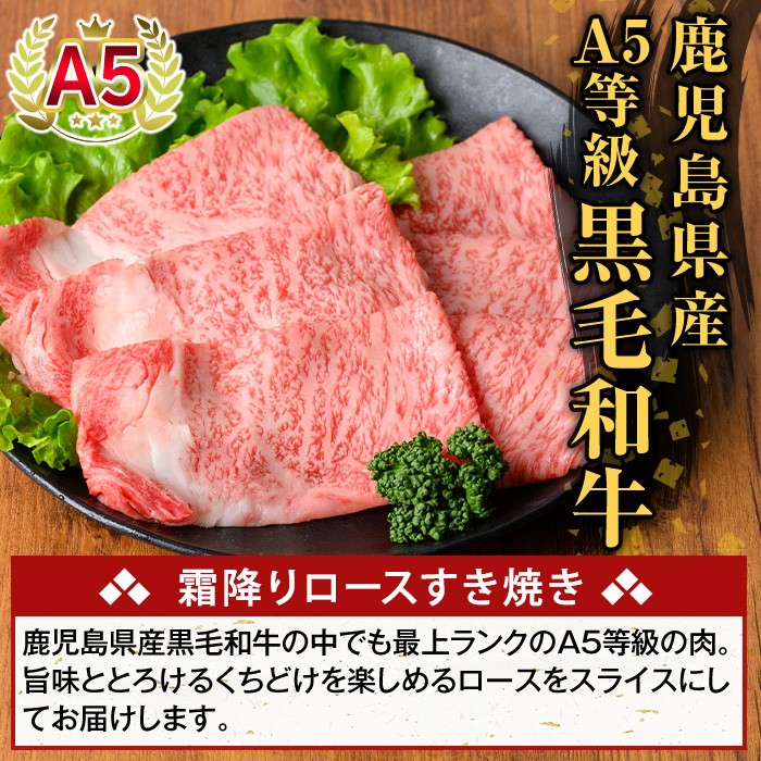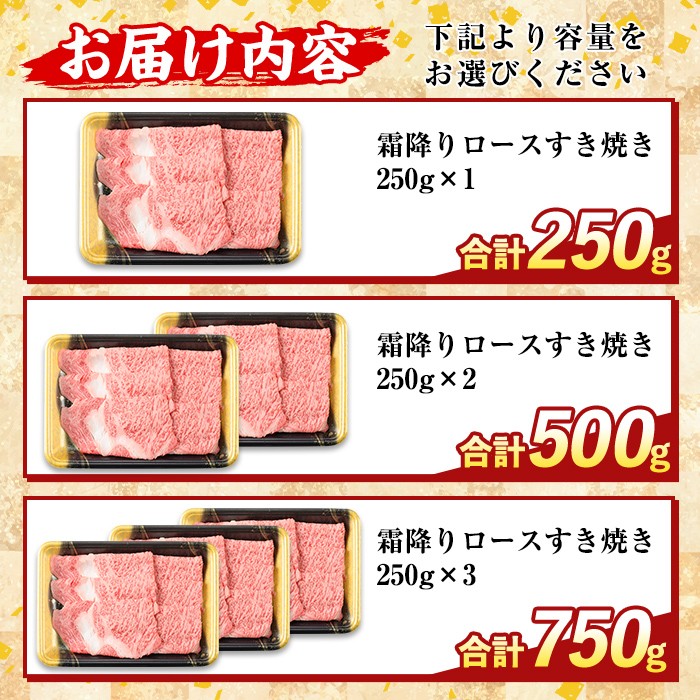 鹿児島県産黒毛和牛の中でも最上ランクのA5等級のお肉をお届け! K-480 <選べる容量>鹿児島県産A5等級黒毛和牛霜降りロースすき焼き(計250g~750g) 【ふるさと産直バザール】霧島市 牛肉 国産 鹿児島県産 ロース スライス 肉 精肉