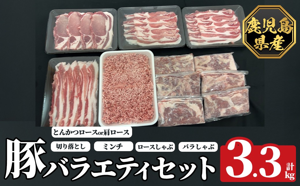 バラエティに富んだ豚肉のセット♪ K-613 《数量限定》鹿児島県産豚バラエティセット(計3.3kg)【ハピネス】霧島市 肉 豚肉 豚 精肉 鹿児島県産 しゃぶしゃぶ とんかつ トンカツ 豚カツ ロース バラ 肩ロース 切り落とし ミンチ小分け 冷凍