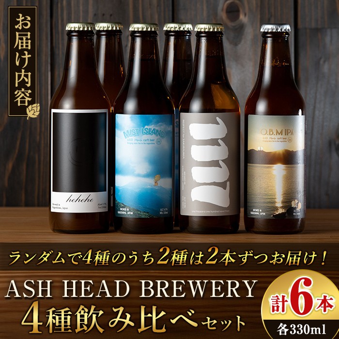 麦芽やホップの香りを際立たせる希少な水質の霧島の天然水を仕込み水として使用♪ K-673 ASH HEAD BREWERY 4種飲み比べセット~霧島連山の恵みが育むクラフトビール~(計6本・各330ml)【ASH HEAD BREWERY】 霧島市 ビール クラフトビール ご当地ビール 地ビール お酒 飲み比べ 家飲み おうち飲み
