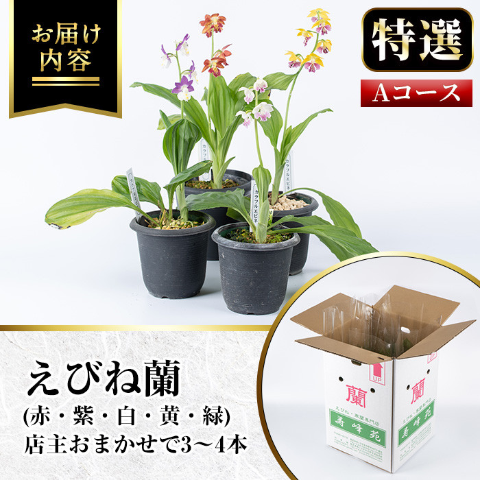 世界らん展日本大賞2016個別部門奨励賞受賞! 【個数限定】寿峰苑特選えびね蘭 店主おすすめ標準Aコース(3本~4本) 鹿児島 冠岳 で育った 蘭 時期により 花 苗 鉢入りでお届け! 【A-1542H】
