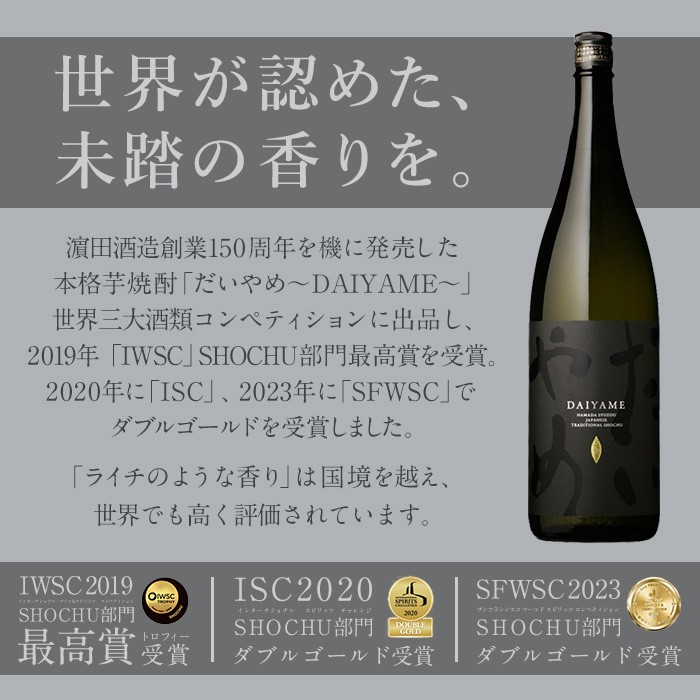 | 容量 | だいやめ~DAIYAME~(濵田酒造)1800ml×2本 |