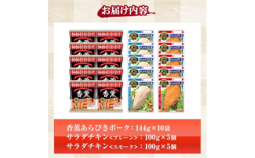 鹿児島工場製造の香薫ウインナーとサラダチキンの詰め合わせセットです♪