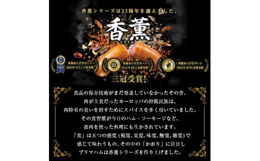 味わい豊かな内なる香り(挽きたてスパイス)と、食欲をそそる外からの薫り(桜スモーク)のJAS特級ウインナーです。