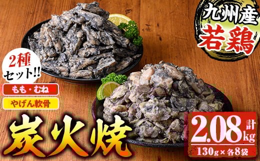 NEW 九州産若鶏炭火焼 もも・むね炭火焼(130g×8P) と やんげ軟骨炭…